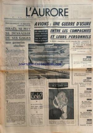 AURORE (L') [No 8237] du 23/02/1971 - PROCHE-ORIENT / ISRAEL NE PEUT SE DESSAISIR DE SES GAGES SANS GARANTIES ABSOLUES PAR FAURE -LES CONFLITS SOCIAUX -L'ACADEMICIEN EUGENE IONESCO -PROF. LENEGRE / L'INFARCTUS MENACE LES SEDENDAIRES -LAOS / 2000 AVIONS US APPUIENT LES SUD-VIETNAMIENS -LES USA REFUSENT DE VENDRE DES FUSEES A L'EUROPE Livres en ligne.